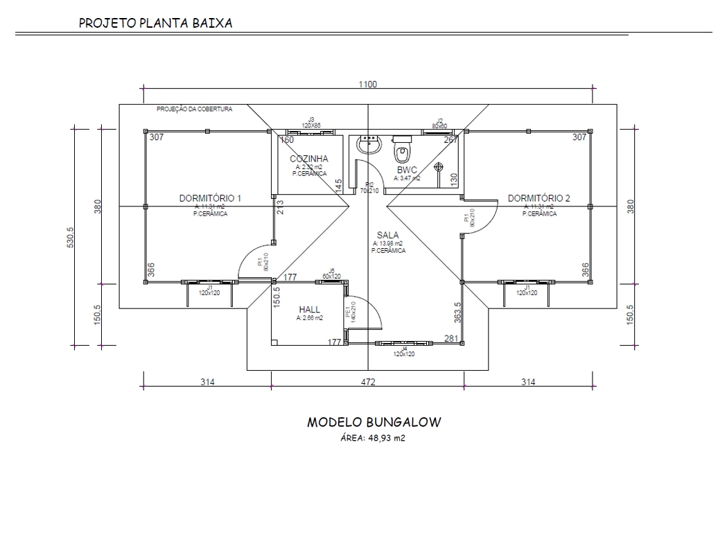 · Estrutura de telhado com vigas e caibros com bitolas conforme projeto