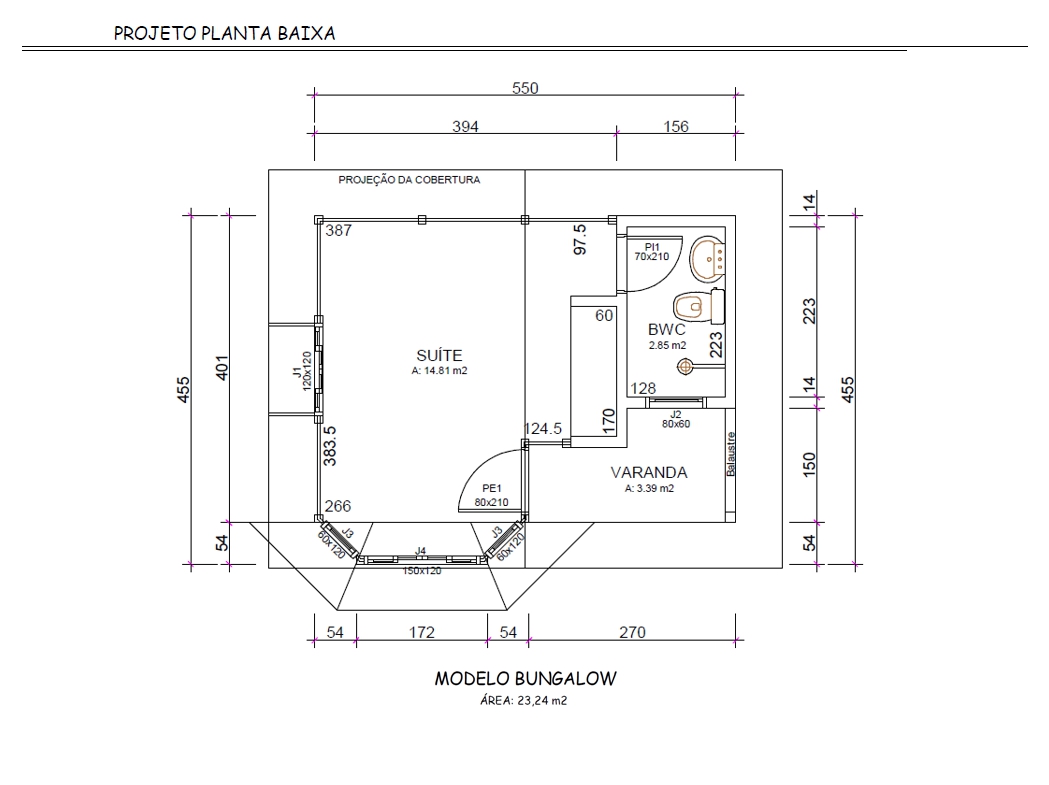 · Janelas em madeira de lei com dimensões conforme necessidade do projeto