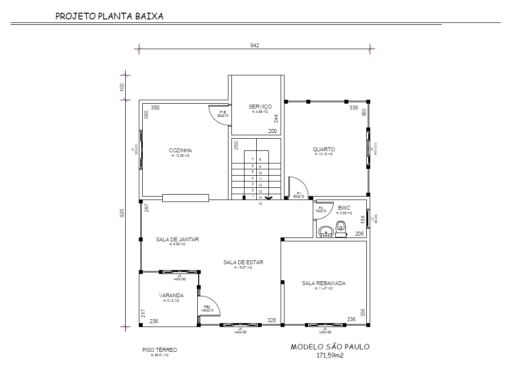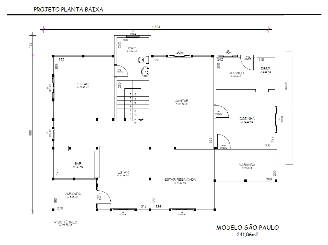 · Janelas em madeira de lei com dimensões conforme necessidade do projeto