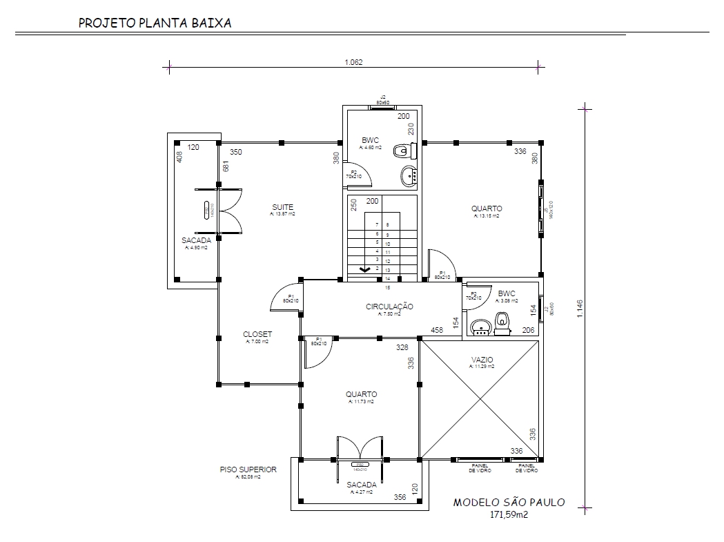 · Cintamento maciço de 14cm x 14cm conforme projeto
